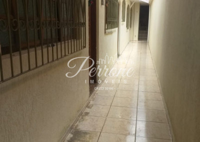 Corredor lateral e garagem, cobertos; Cômodo que pode ser usado como dispensa, varanda coberta.