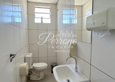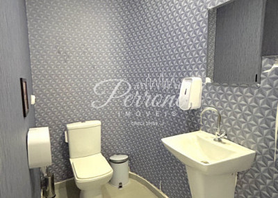 - No térreo conta com recepção, lavabo, 3 salas, copa, despensa, área de estoque, dois banheiros, corredor descoberto para carga e descarga e estacionamento;