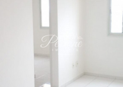 Apartamento com 45m² de área útil, 1 vaga de garagem, 2 dormitórios, 1 banheiro, sala, cozinha e lavanderia.
