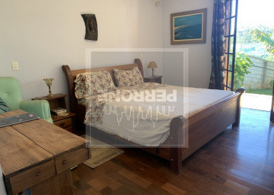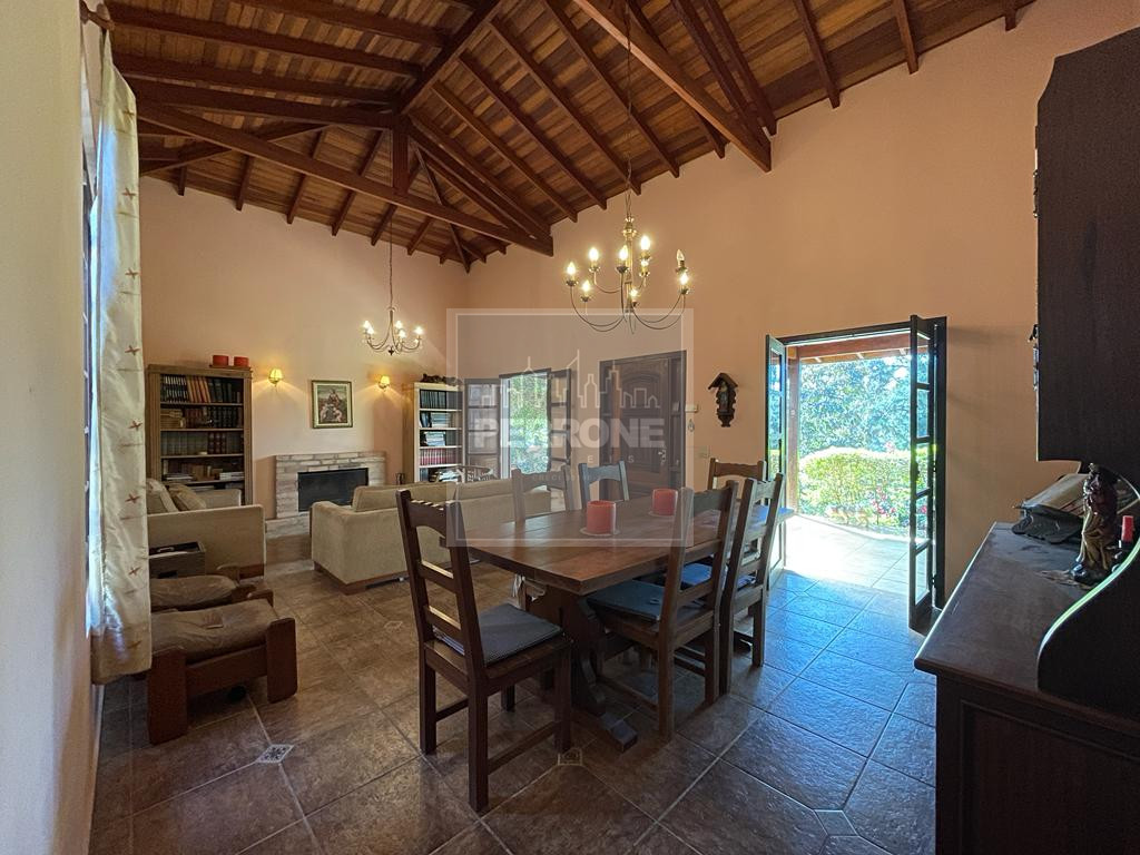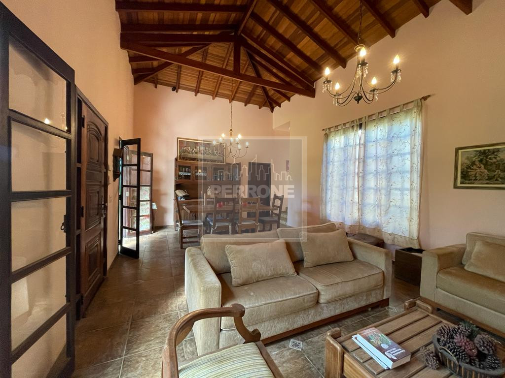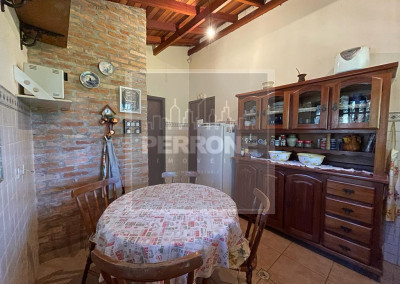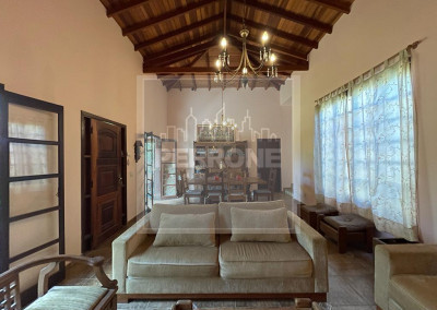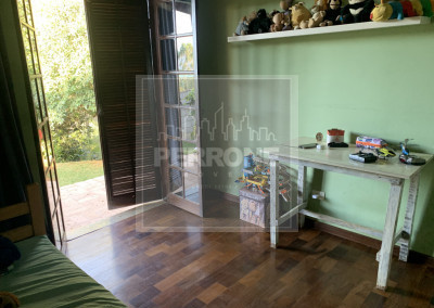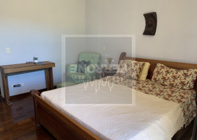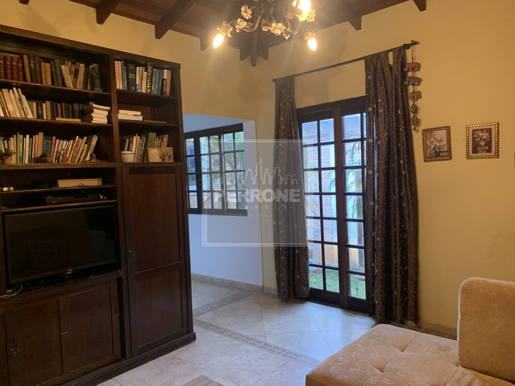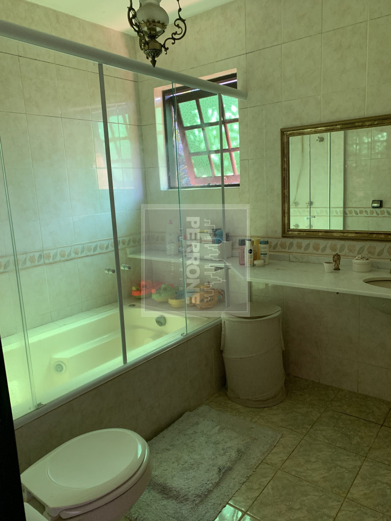 Terreno com 1.012 m2 e casa com 240 m2. Três suítes, uma master com closet e banheira, sala íntima (ou de TV), sala de visitas com lareira, sala de jantar, cozinha, lavanderia, lavabo, varanda na sala e varanda nos quartos. Um quartinho ao fundo com um banheiro fora. Caixa d'água de 5.000 L. Não tem piscina nem churrasqueira de alvenaria, mas tem espaço para ambos. Além de árvores como Ipês, tem árvores frutíferas (amora, abacate, banana, laranja, limão rosa, mamão, manga e outras)