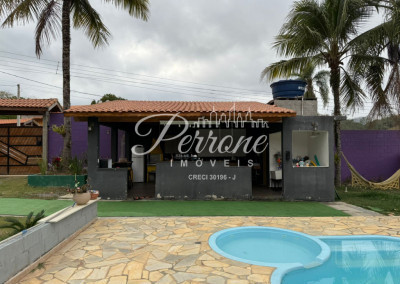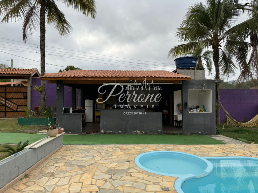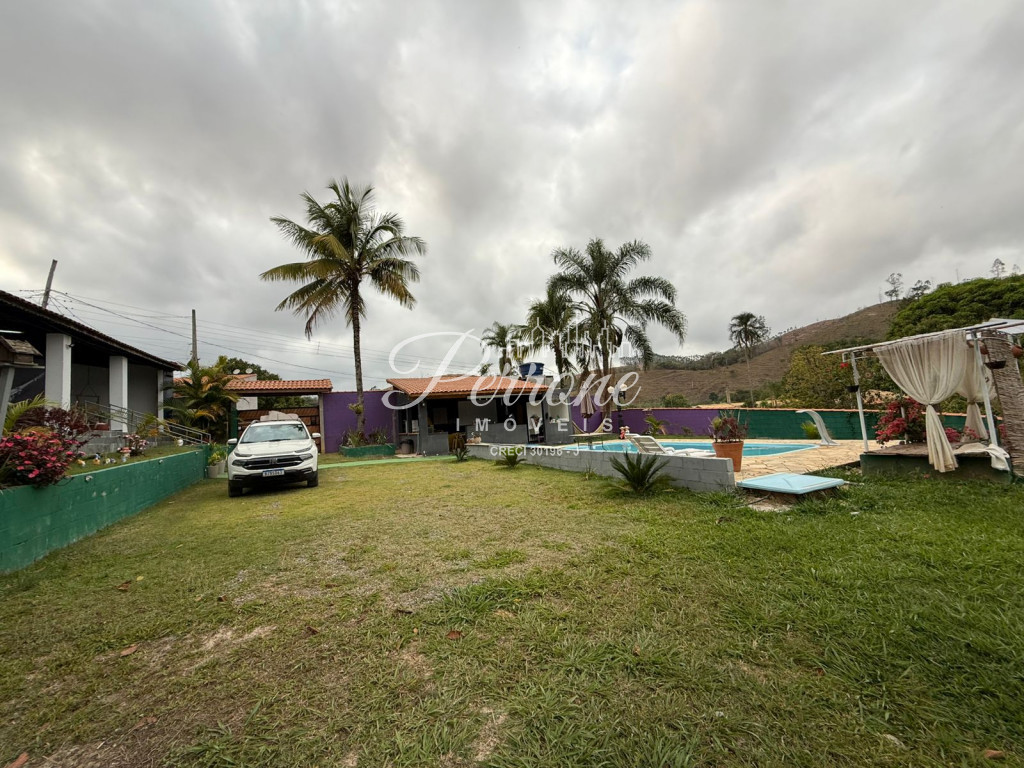 A casa possui 3 dormitórios dois banheiros, sendo um suíte, uma sala ampla com possibilidade de fazer cozinha americana, uma cozinha ampla, varanda que pega metade da casa, piscina com luz interna, algumas arvores frutiferas, estrutura pronta para casa de caseiro.