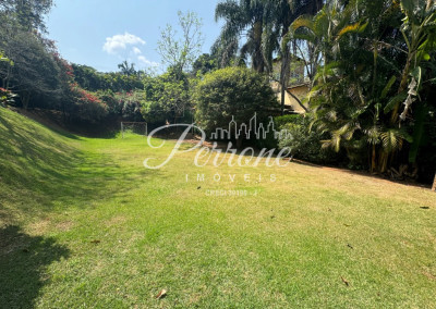 O terreno é composto por 3 lotes padrão (aproximadamente 1.100m² cada), portanto conta com 3.345m², com aclividade média, e boa parte da construção no pavimento térreo.
