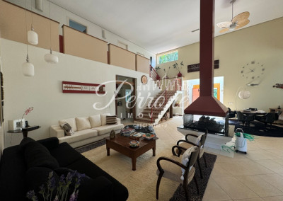 - Sala de estar com pé- duplo, lareira central, sala de jogos, e integração com sala de jantar e terraço gourmet;