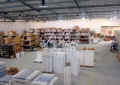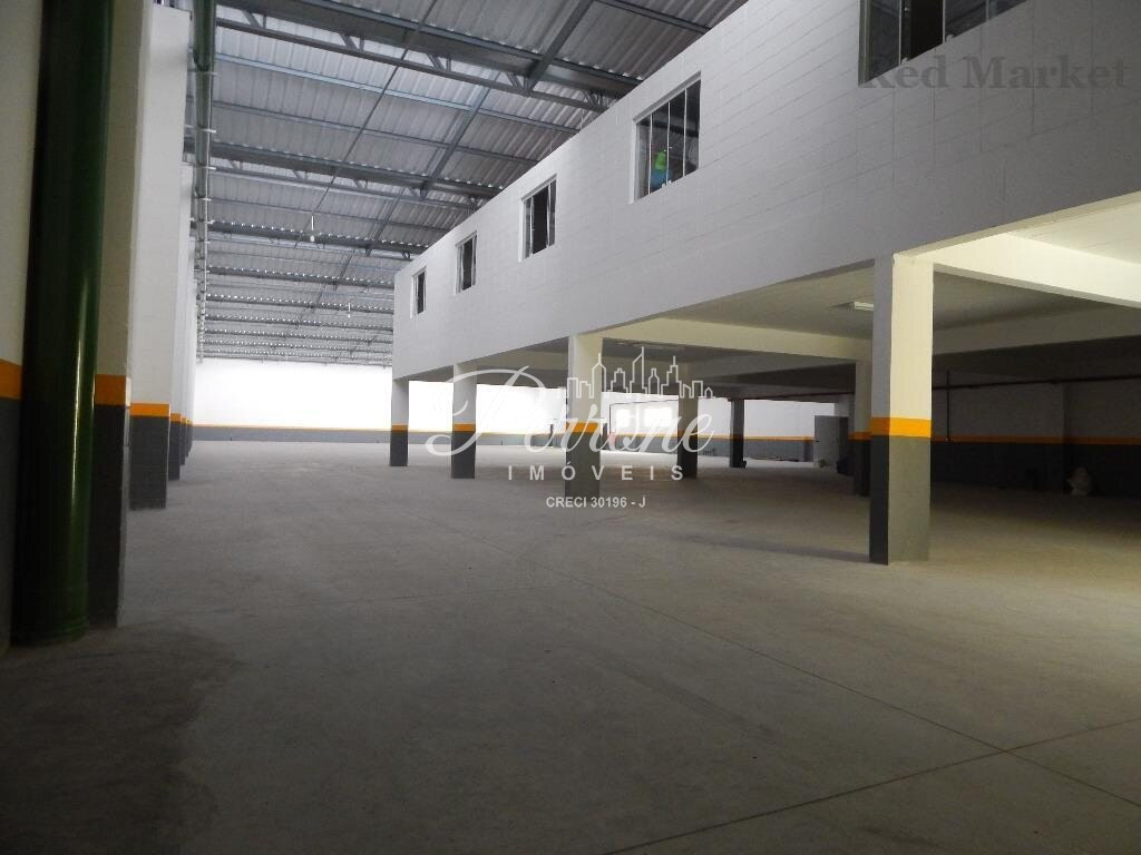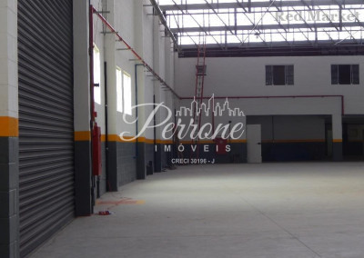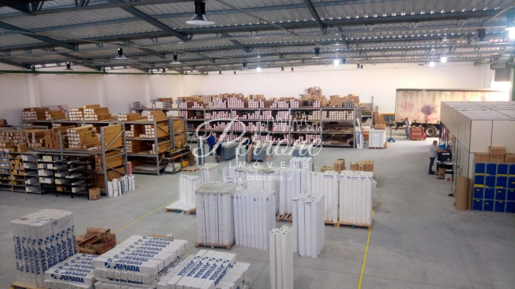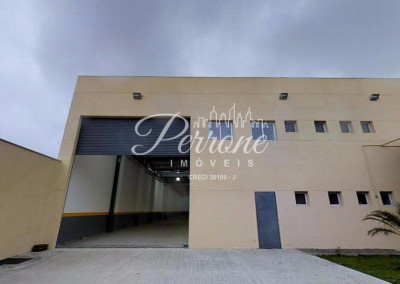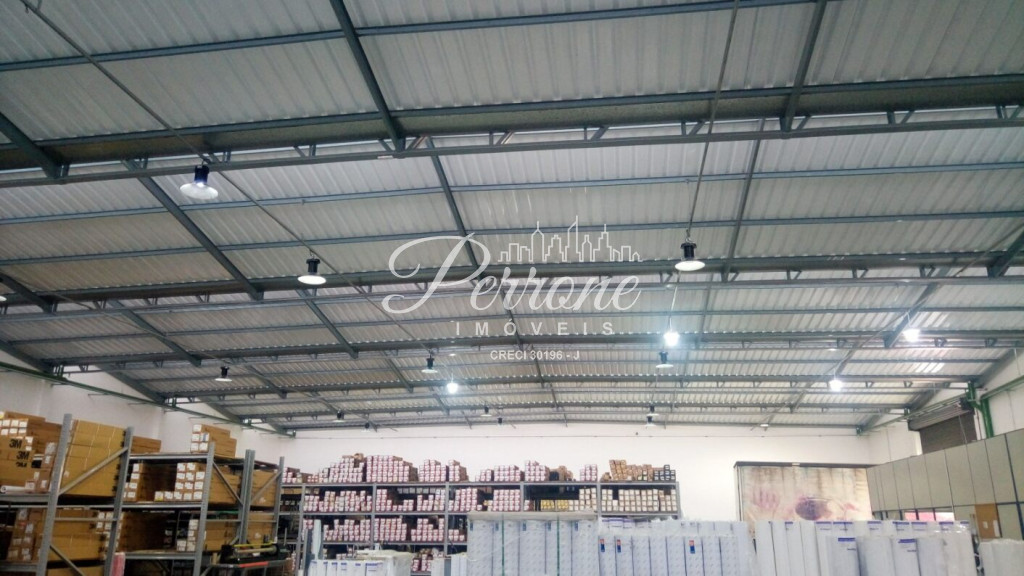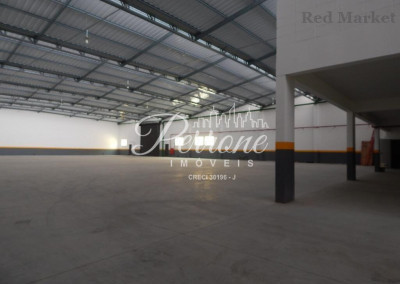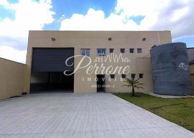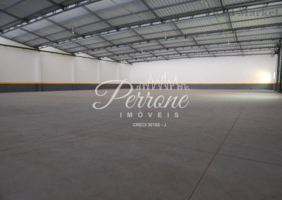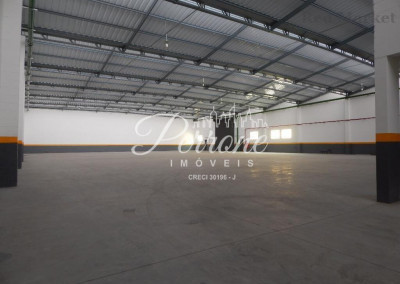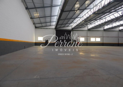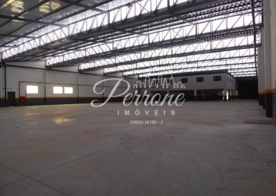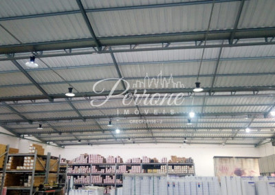 Com escritórios, vestiários, telhado com estrutura de metal, pé direito alto, área para estacionamento.