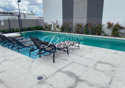 O condomínio oferece infraestrutura completa de lazer, incluindo piscina, academia e churrasqueira, proporcionando conforto e qualidade de vida aos moradores.