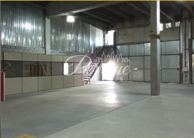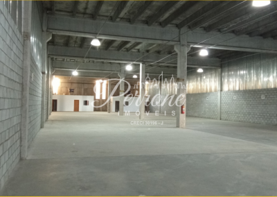 Galpão localizado em condomínio industrial com 1.100m² de área total, sendo aproximadamente 700m² de área fabril e 60m² de escritório em mezanino, além de áreas comuns compartilhadas. O imóvel possui pé-direito de 8 metros, estrutura pré-moldada e piso industrial com resistência para até 8 toneladas, ideal para operações industriais e logísticas.