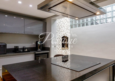- Cozinha completa com ilha, fogão, forno elétrico, micro-ondas Brastemp Gourmand, geladeira, frigobar, lava-louças, adega e exaustor;